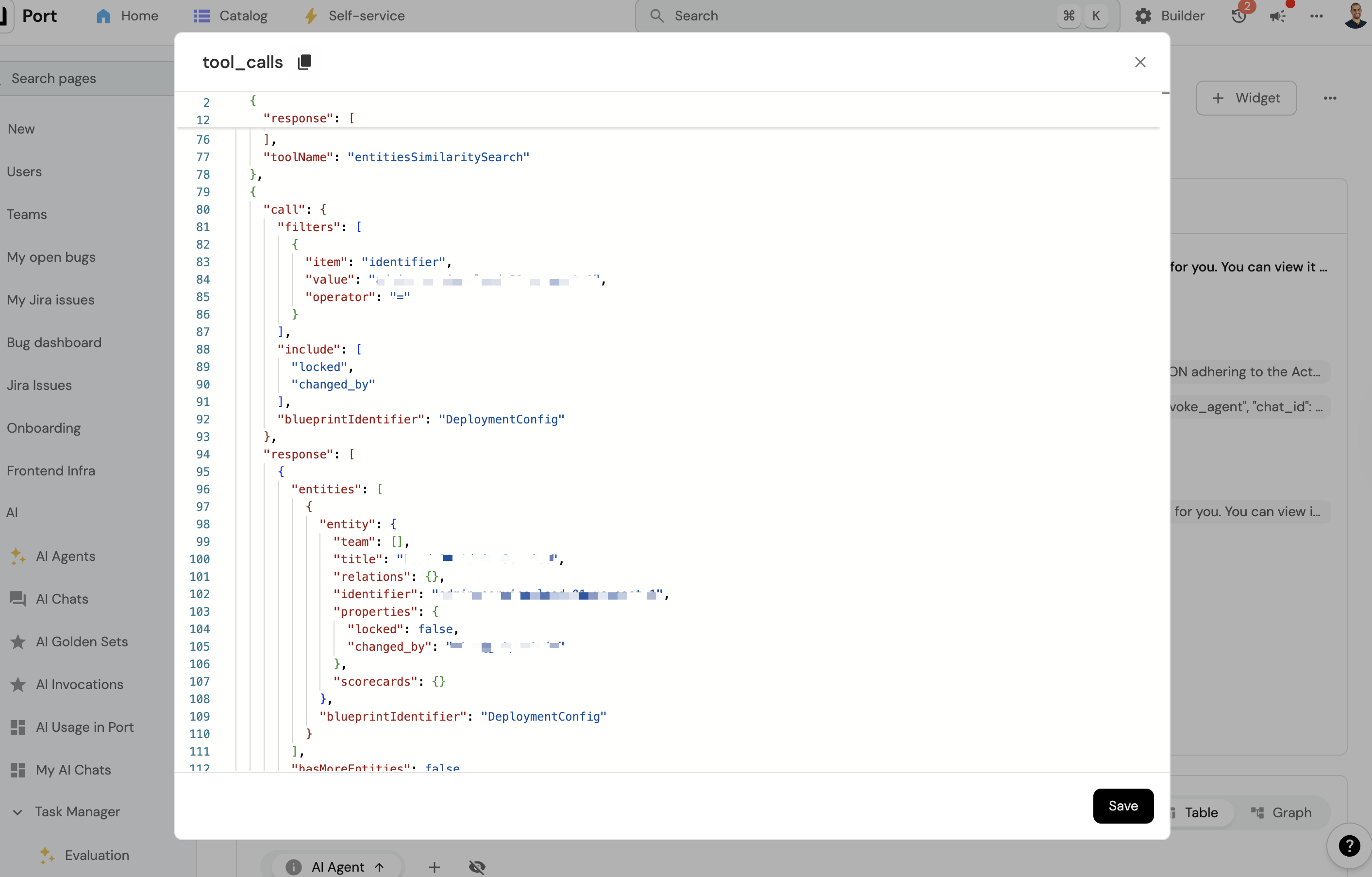 AI Invocation Tracking: Every Port AI interaction creates a detailed invocation record that includes who asked what, the AI's response, which tools were used, and complete execution logs. These records are stored as entities in your Port catalog for monitoring, debugging, and audit purposes.
