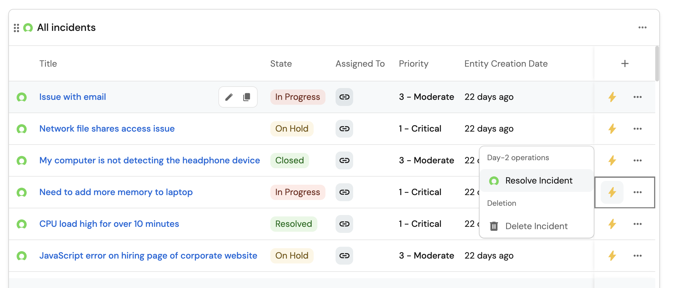 2. Resolve an existing incident.